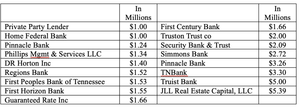 Close to downtown, Broadway Electric Service Company, LLC purchased the property at 1715 Riverside Drive. A private trust gained $2.4 million on that transaction. Engert Plumbing currently occupies the buildings. The last two on the list are even further east. In the Gibbs community Mesana Investments, LLC sold an additional 25 lots in the Bellhaven Subdivision on Beeler Road to D.R. Horton, Inc. The lots went for a total of $1.69 million. The other transfer took place at the corner of AJ Highway and Kitts Road. Taylor Investments sold the convenience store at 238 AJ Highway to a private party for $1 million.