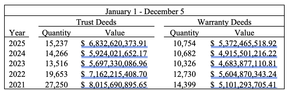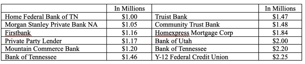 The first week of December is behind us, and Christmas is looming! During last week, 1,573 documents were added to Knox County’s property records. Trust deeds accounted for 408 transactions valued at $122.83 million. There were 11 over $1 million, but unlike last week, none above $2.5 million. They are listed below: